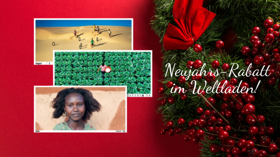 Neues Jahr, neue Angebote! Zum Jahresanfang 2026 hält der Weltladen Albstadt wieder zahlreiche besondere Angebote für Sie bereit. Ab dem 7. Januar 2026 sind wir wieder wie gewohnt für Sie da. Und ein kleiner Tipp: Die Restbestände der „Brot-für-die-Welt“-Kalender 2026 gibt es jetzt zu einem reduzierten Preis – schnell zugreifen lohnt sich! Mehr erfahren /…