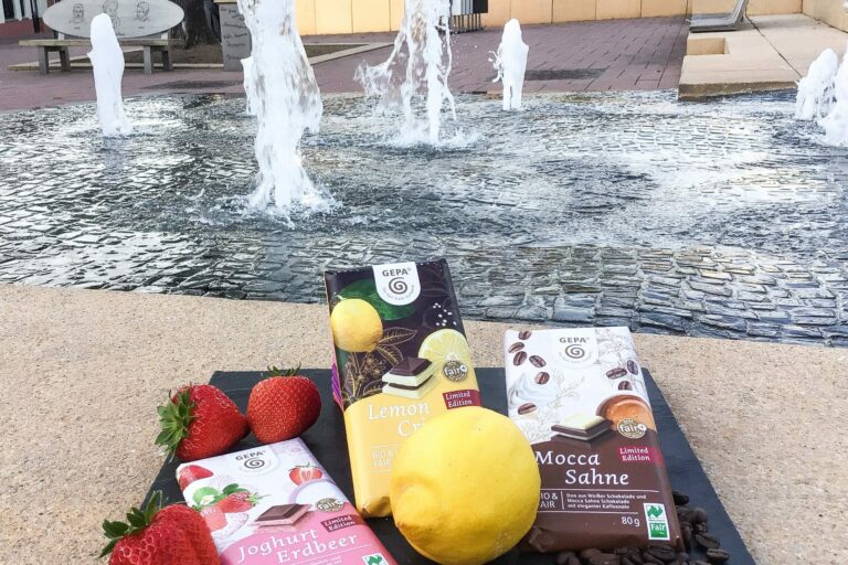 Das neue Produkt des Monats sind die drei Sommerschokoladen von GEPA. Die feinen und aromatischen Schokoladen kommen aus Paraguay, Sao Tome, Dominikanische Republik und Togo. Die Sorten Joghurt-Erdbeere, Lemon-Crisp und Mocca-Sahne (alle 80g) sind bei uns im Weltladen Alzey von 2,50€, um 16% auf 2,10€ reduziert.