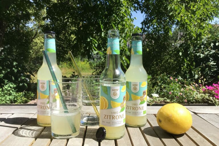 Die erfrischende Zitronenlimonade von GEPA aus Paraguay ist unser Produkt des Monats im August. Die Limo ist vom 08.08.2022 bis zum 04.09.2022 von 1,38€ auf 1,18€ (inkl. Pfand) reduziert.
