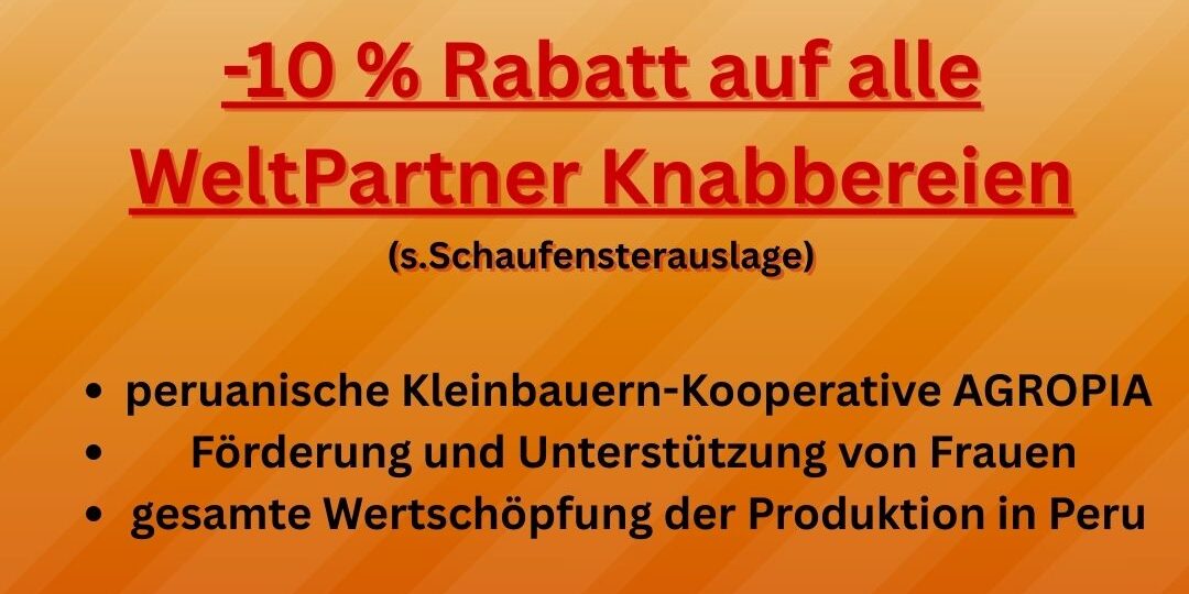 Im Monat Januar gibt es 10 % Rabatt auf alle „Knabberwaren“ von WeltPartner.
