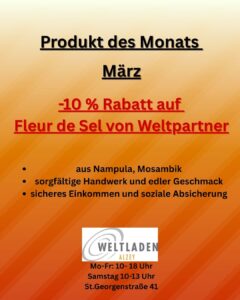 👉 Unser Angebot im März: 10 % Rabatt auf Fleur de Sel von WeltPartner im Weltladen Alzey.