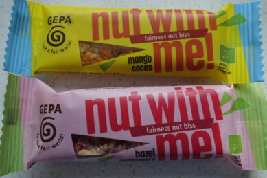 „Unfair snacken? Nicht mit mir!“ Das ist das Motto der neuen Nussriegel von GEPA (zum Beispiel „mango cocos“ und „hazel raspberry“, siehe Foto). Es wird sichergestellt, dass alle Nüsse und Trockenfrüchte biozertifiziert und vor allem fair angebaut werden.