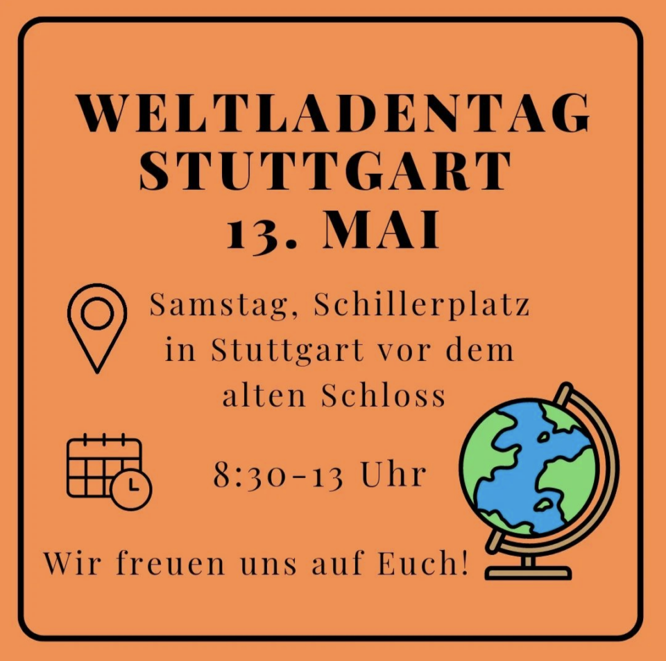 Achtung!! Am 13. Mai haben wir zusammen mit allen anderen Weltläden in Stuttgart einen Stand beim Schillerplatz. 🌍 Der Anlass ist unser 50 jähriges Jubiläum. 🥳 Es gibt ein Glücksrad mit Quiz und verschiedenen Preisen.🏆 Äffle & Pferde kommen auch. 🐵 Es gibt Infos über den fairen Handel und das neue Lieferkettengesetz. ℹ️ Wir freuen…