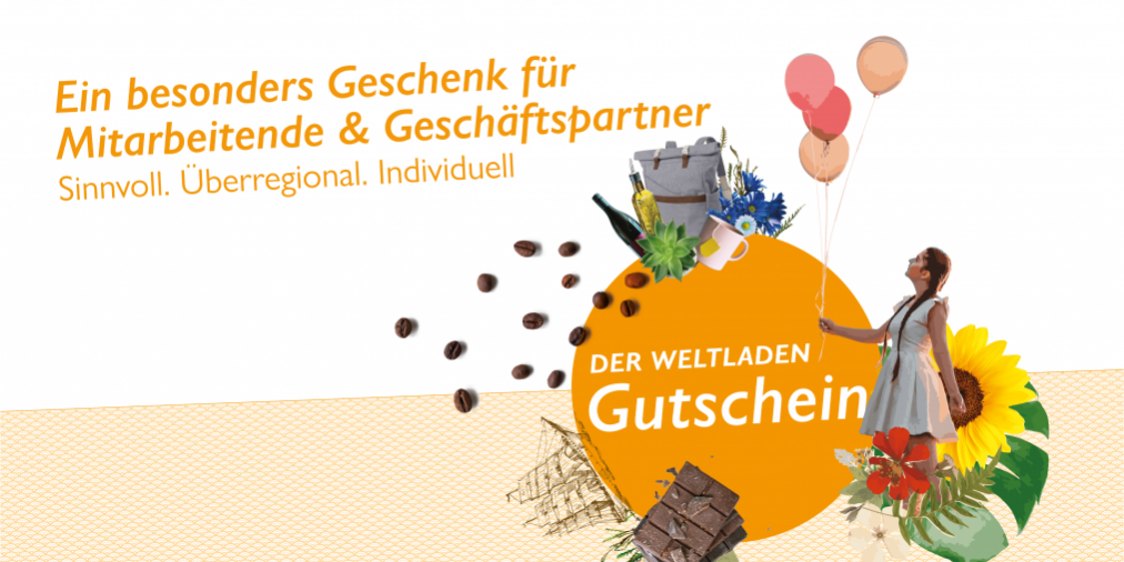 Schenken macht glücklich, vor allem, wenn es Menschen, die uns wichtig sind, Freude bereitet. Noch glücklicher macht schenken, wenn es etwas bewegen kann. Mit dem Weltladen-Gutschein fairwöhnen Sie Ihre Lieben und leisten einen Beitrag für eine nachhaltige und gerechtere Welt. Die Gutscheine können in teilnehmenden Weltläden in Deutschland eingelöst werden.