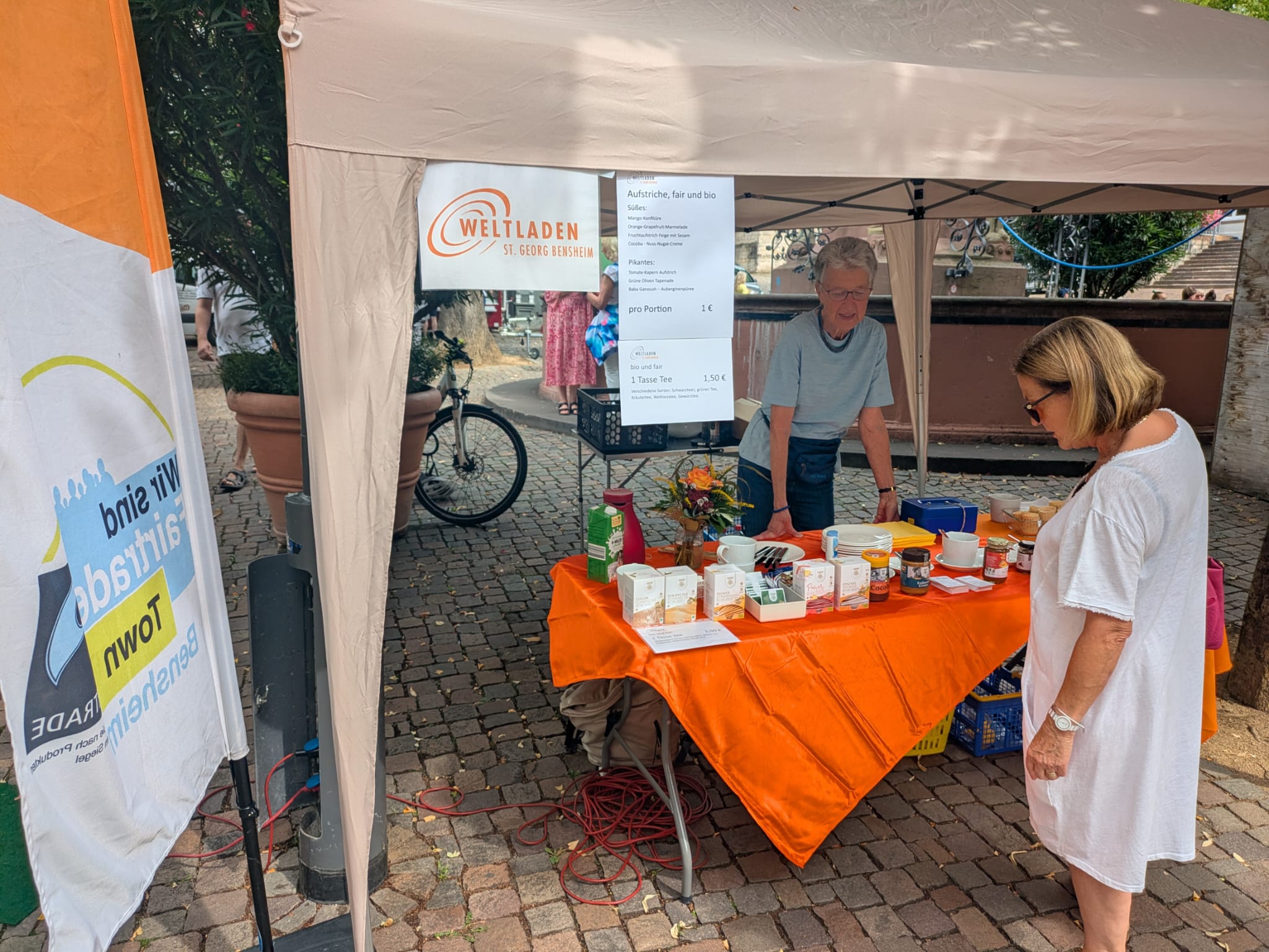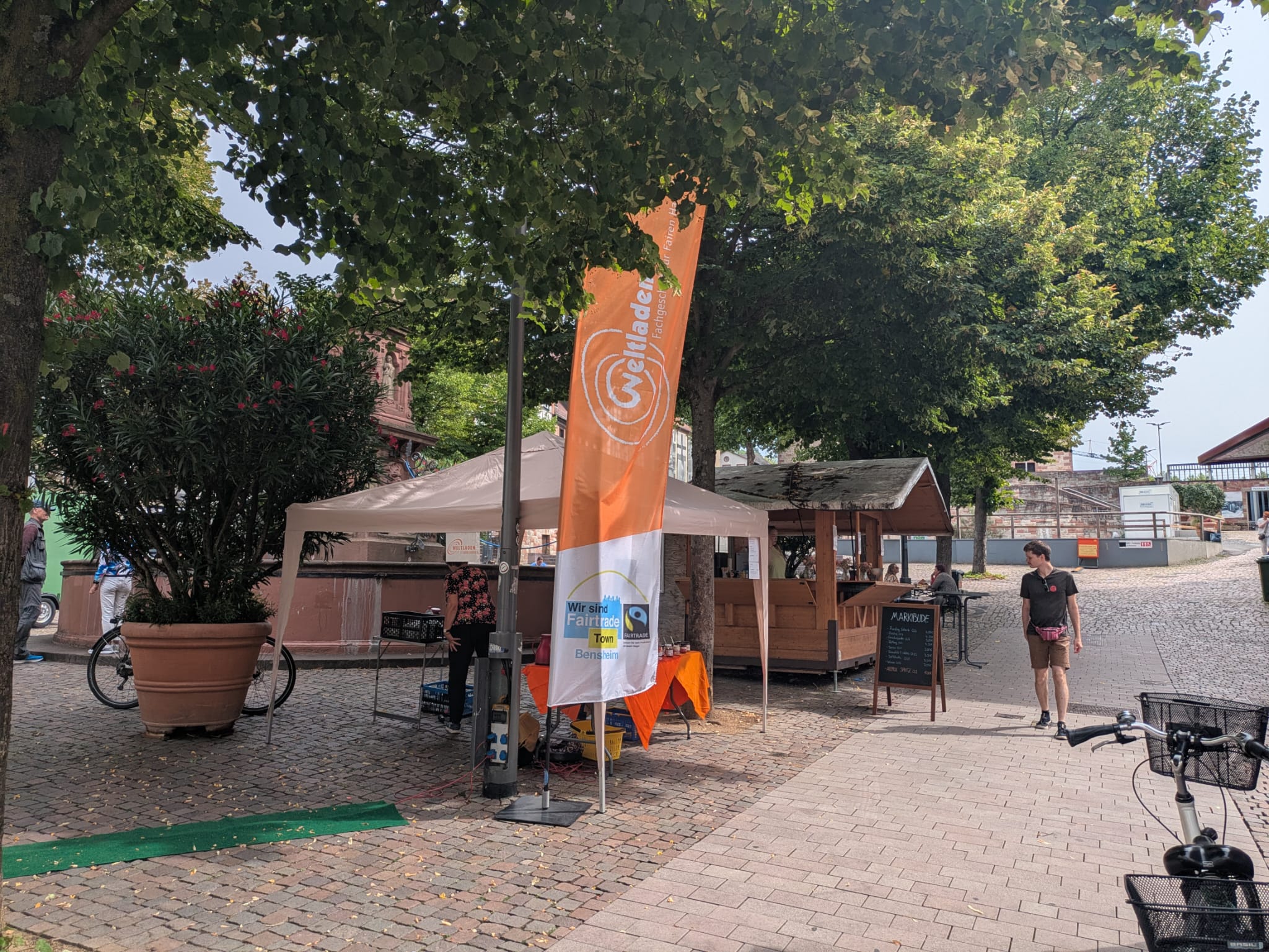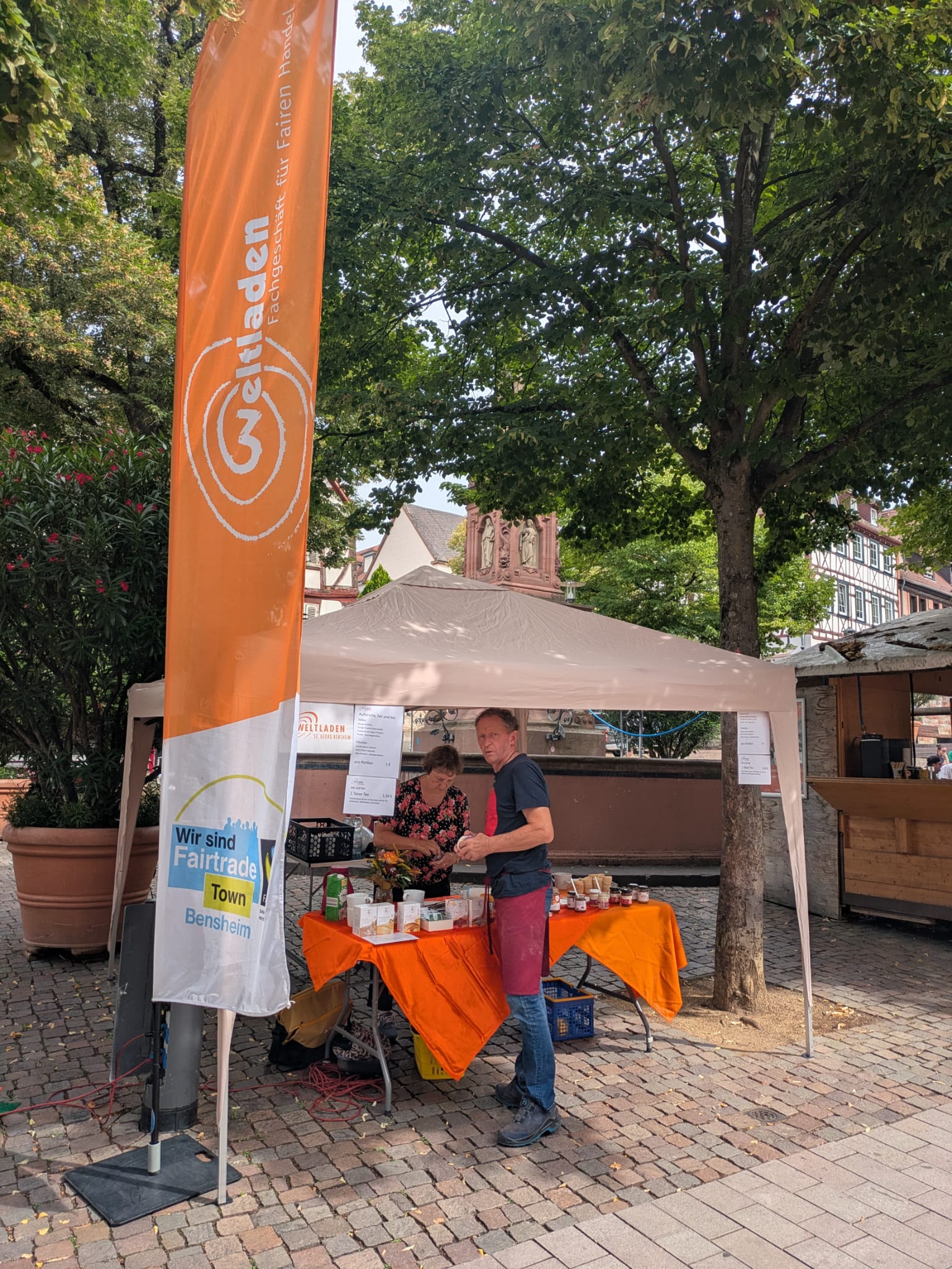Heute war der Weltladen Bensheim mit einem eigenen Stand beim beliebten Marktfrühstück vertreten. Bei bestem Marktwetter konnten Besucher*innen faire Produkte kennenlernen, probieren und sich über den fairen Handel informieren.