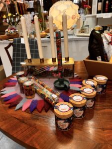 Die herrlich bunt bemalten Kerzen auf unserem Weihnachtstisch kommen aus der Manufaktur Kapula in Südafrika.