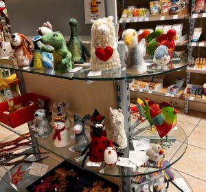 Handgestrickter Fingerpuppen-Zoo im Weltladen
