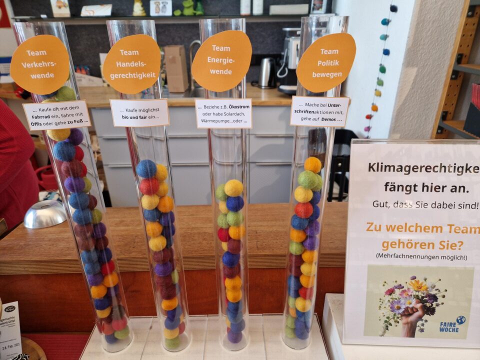 Mit einer kleinen Umfrage haben wir am Tresen danach gefragt, zu welchem Team Ihr bereits gehört: Team Verkehrswende, Team Handelsgerechtigkeit, Team Energiewende oder Team Politik bewegen? Mehrfachnennungen waren möglich. Als Bremer war die Verkehrswende ganz vorne dabei, gefolgt von Handelsgerechtigkeit. Vielen Dank, dass Ihr dabei seid!