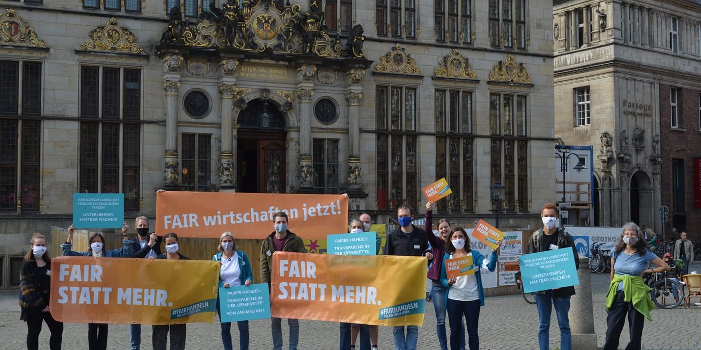 Es geht um zukunftsfähiges Wirtschaften. „Immer mehr“ darf nicht länger unser Handeln bestimmen. Das Faire-Woche-Bündnis Bremen machte auf dem Marktplatz auf den Beginn der bundesweiten Fairen Woche vom 11. – 25.09. aufmerksam. Lesen Sie hier mehr zum Thema.