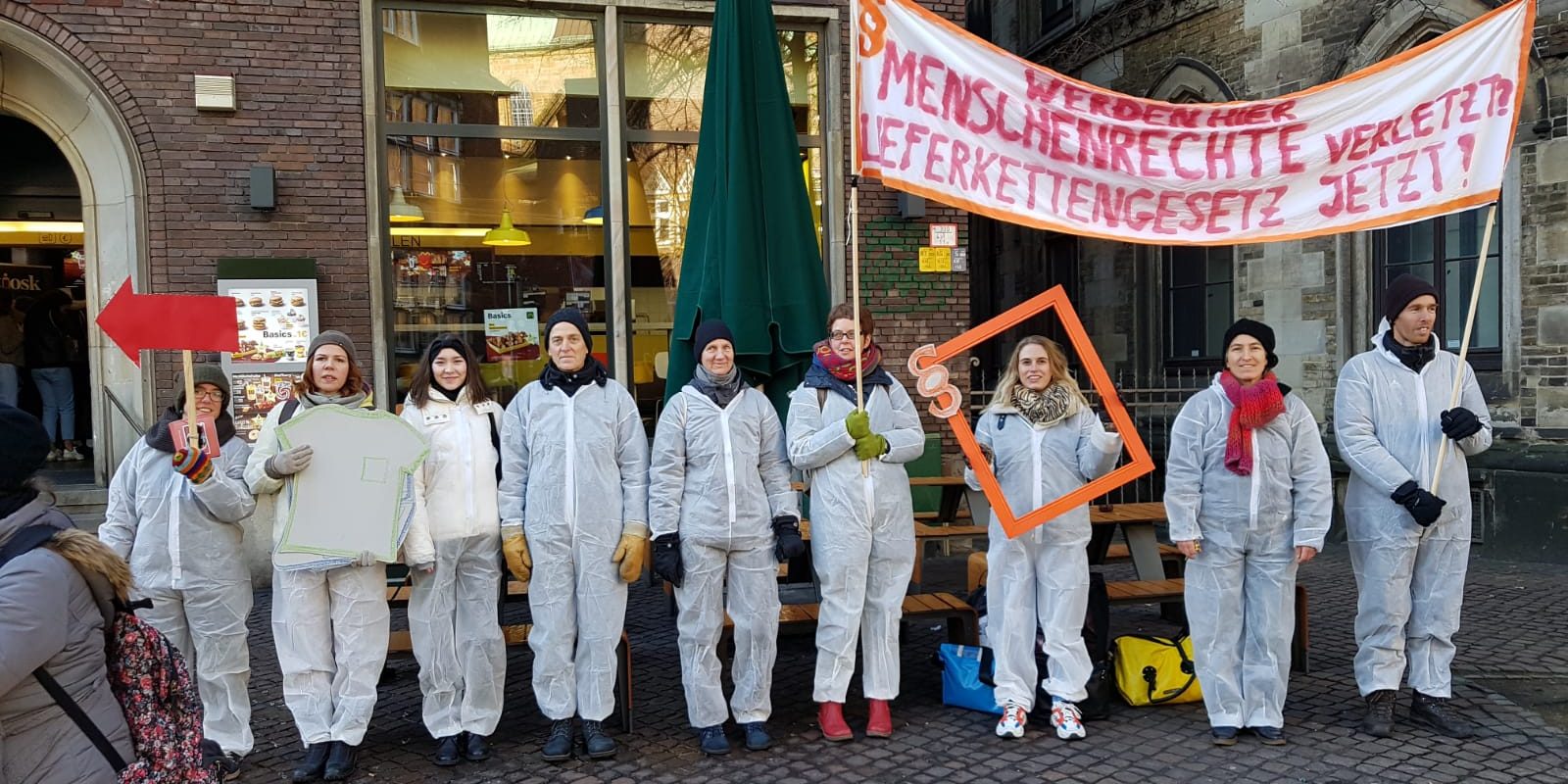 Am Samstag, den 30. November waren wir gemeinsam mit anderen Akteuren für ein Lieferketten-Gesetz in der Bremer Innenstadt unterwegs.