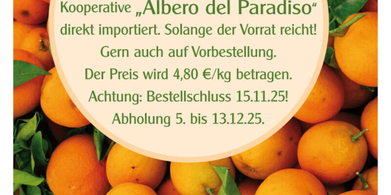 Nov.102025 Gesund durch den Winter! Wir haben wieder die wunderbaren Navelorangen im Weltladen! Category: AktuellesVon bremerhaven10. November 2025 Autor: bremerhaven KommentarnavigationZurückVorheriger Beitrag:Rezept des Monats Oktober
