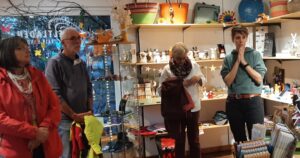 Am 05.11. nachmittags begrüßten wir Judith Klingen im uns so vertrauten Weltladen. Kurz darauf begannen wir, ihn dank ihrer Fragen mit anderen Augen zu sehen. Im Mittelpunkt standen beispielsweise Überlegungen: Wie können wir unseren Weltladen attraktiver gestalten? Wie erreichen wir unsere Kund*innen? Manches probierten wir gleich vor Ort aus. Uns beschäftigte die Frage: Wie gelingt gute Kundenberatung? Schließlich setzten wir das Gespräch im Atelier in der Klopstockstraße fort. Dort findet seit langem unser Ladengespräch statt. Danke, Judith, für die Zeit und die vielen Tipps und Ideen. Wir werden verschiedene Dinge ausprobieren und freuen uns auf die nächste Gelegenheit zu inspirierendem Austausch!