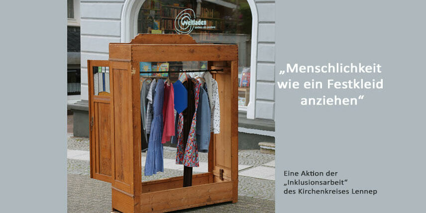 Der Schrank ist nicht perfekt, die Kleider sind getragen und haben eine Geschichte. So wie wir. Mit dem Schrank, den Altkleidern und Gebet wird ein positives Zeichen gesetzt in einer Welt, die dringend mehr gelingendes Miteinander braucht. Um Gottes Hilfe bitten wir.