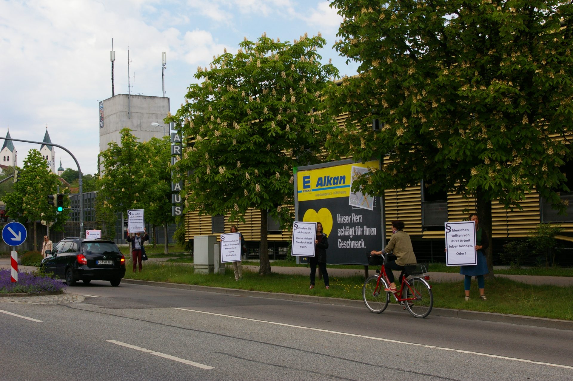 Alles in allem ein ereignisreicher und lebendiger Samstag. Wenn die Initiative Lieferkettengesetz auf Bundesebene die Aufmerksamkeit bekommt, die die Aktionen in Freising bekommen haben, dann wird es bald ein Lieferkettengesetz geben. Wir geben die Hoffnung nicht auf!