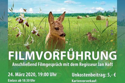 Abgesagt! Gekaufte Eintrittskarten können an den Orten, an denen sie gekauft wurden zurückgegeben werden (ohne Eile). Filmabend mit Regisseur Jan Haft und seinem Dokumentarfilm „Die Wiese“ am Dienstag, 24 März, um 19:00 Uhr im Saal des St. Georg-Hauses (Einlass ab 18:30 Uhr) Jan Haft zählt zu den bekanntesten Naturfilmern Deutschlands. Mit seinen ungewöhnlichen Aufnahmen beeindruckt…