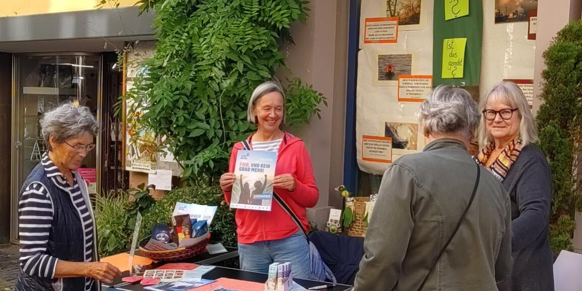 Am Freitag, den 20.09 2024 war Tag des Klimastreiks. Im Rahmen der Fairen Woche unter dem Motto „Fair. Und kein Grad mehr!“ wurden verschiedene Kaffee- und Schokoladenprodukte vorgestellt. Kund:innnen konnten sich vor und im Weltladen zum Thema informieren: