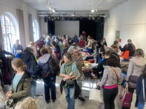 Die meisten Menschen hierzulande konsumieren zu viel Mode – und das zu schnell, findet Dorothee Schäfer-Bier vom Weltladen Gelnhausen, der den Kleidertausch mit organisiert. Schnell geklickt, schnell geliefert. Fast Fashion verspricht Trends im Sekundentakt. Doch der wahre Preis ist hoch: riesige Kleiderberge vermüllen Landschaften, Flüsse werden verschmutzt, Waschmaschinen spülen Mikroplastik in die Ozeane und Arbeiter:innen werden ausgebeutet.