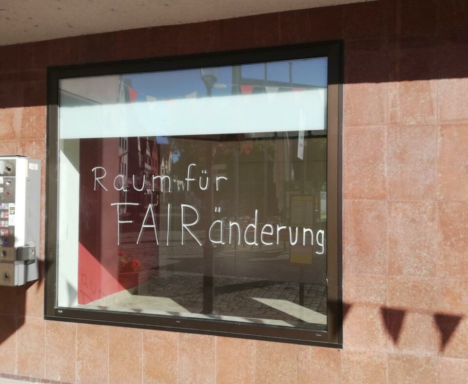 …so steht es seit diesen Tagen am Schaufenster des leergeräumten Ladens gleich neben dem Rathaus. Dorthin will der Weltladen in den kommenden Monaten umziehen. Eine erste Ladenbesichtigung zeigt, dass da noch allerhand bevorsteht für das ehrenamtliche Team des Gemündener Weltladens. Im Verkaufsraum sind umfangreiche Renovierungsarbeiten nötig bis dort irgendwann im Herbst ein neuer Weltladen entstehen…