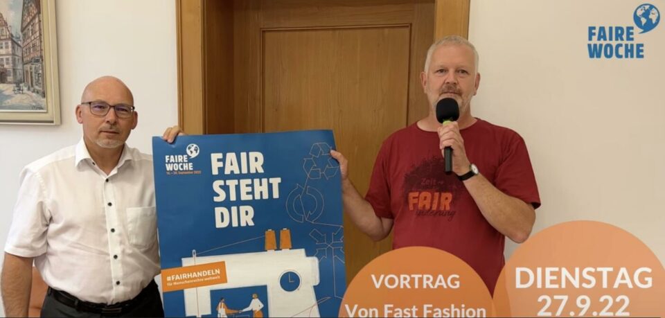 Dienstag 27.09.2022 um 19.30 Uhr in der Scherenberghalle Das Thema Faire Kleidung ist zentrales Thema der diesjährigen Fairen Woche 2022. Darum geht es auch im Vortrag vom Nachhaltigkeitsexperten Frank Herrmann, der am Dienstag 27.09.2022 um 19.30 Uhr im Foyer der Scherenberghalle, Hofweg 9 in Gemünden die ungerechten Strukturen in der Modeproduktion näher beleuchtet, der Frage…