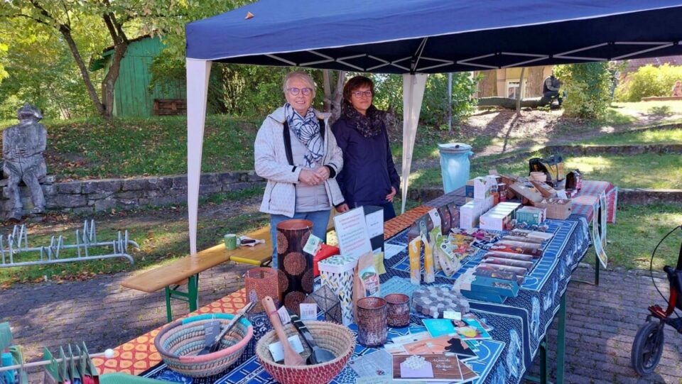 Auf dem „Regionalen Markttag der Dorfgemeinschaft Hohenroth“ war auch der Gemündener „Weltladen Esperanza“ mit einem attraktiven Angebot vertreten. Fair gehandelte Lebensmittel, wie Schokolade, Tee, Kaffee oder Pralinen, wie auch kunsthandwerkliche Artikel wurden angeboten und von den Besuchern des Marktes gut angenommen.