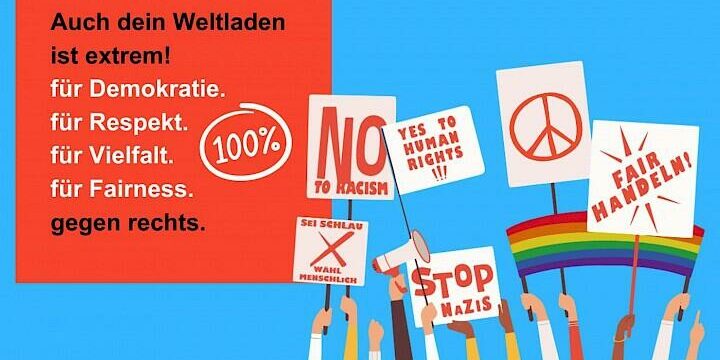Gemeinsam mit mehr als 1.700 Organisationen positioniert sich die Weltladen-Bewegung für eine offene, demokratische, plurale und solidarische Gesellschaft und gegen den Rechtsruck in Deutschland.