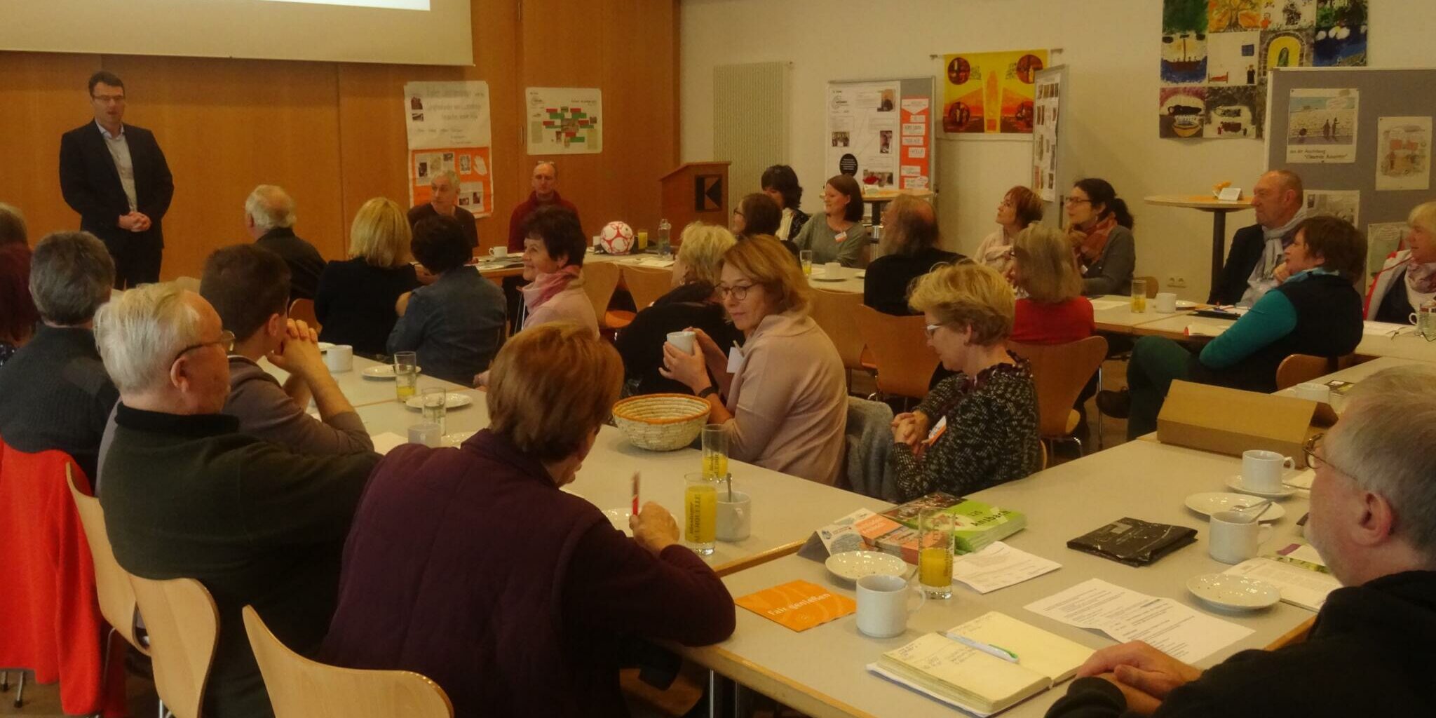 Zweimal jährlich treffen sich Vertreter der nordbayerischen Weltläden und Handelsgruppen zum Erfahrungs- und Gedankenaustausch. Gastgeber des Herbsttreffens mit dem Titel „Faire Trade Town und dann?“ war in diesem Jahr der Eine Welt e.V. Herrieden. Manfred Niederauer begrüßte als stellv. Bürgermeister und Leiter der örtlichen Steuerungsgruppe und Frank Braun, Eine-Welt-Promotor für die Region Mittelfranken, referierte über das Tagesthema. Nach der Mittagspause luden Franziska Reutter und Beate Jerger vom Vorstandsteam, die Teilnehmenden zum fairen Spaziergang durch Herrieden ein. Sie stellten Orte und Geschäfte vor, an denen bereits Fairer Handel praktiziert wird. Eine Besonderheit des Rundgangs war die Präsentation der Eine Welt-Schaufenster in einem leerstehenden Geschäft, die regelmäßig zu entwicklungspolitischen Themen dekoriert wierden.