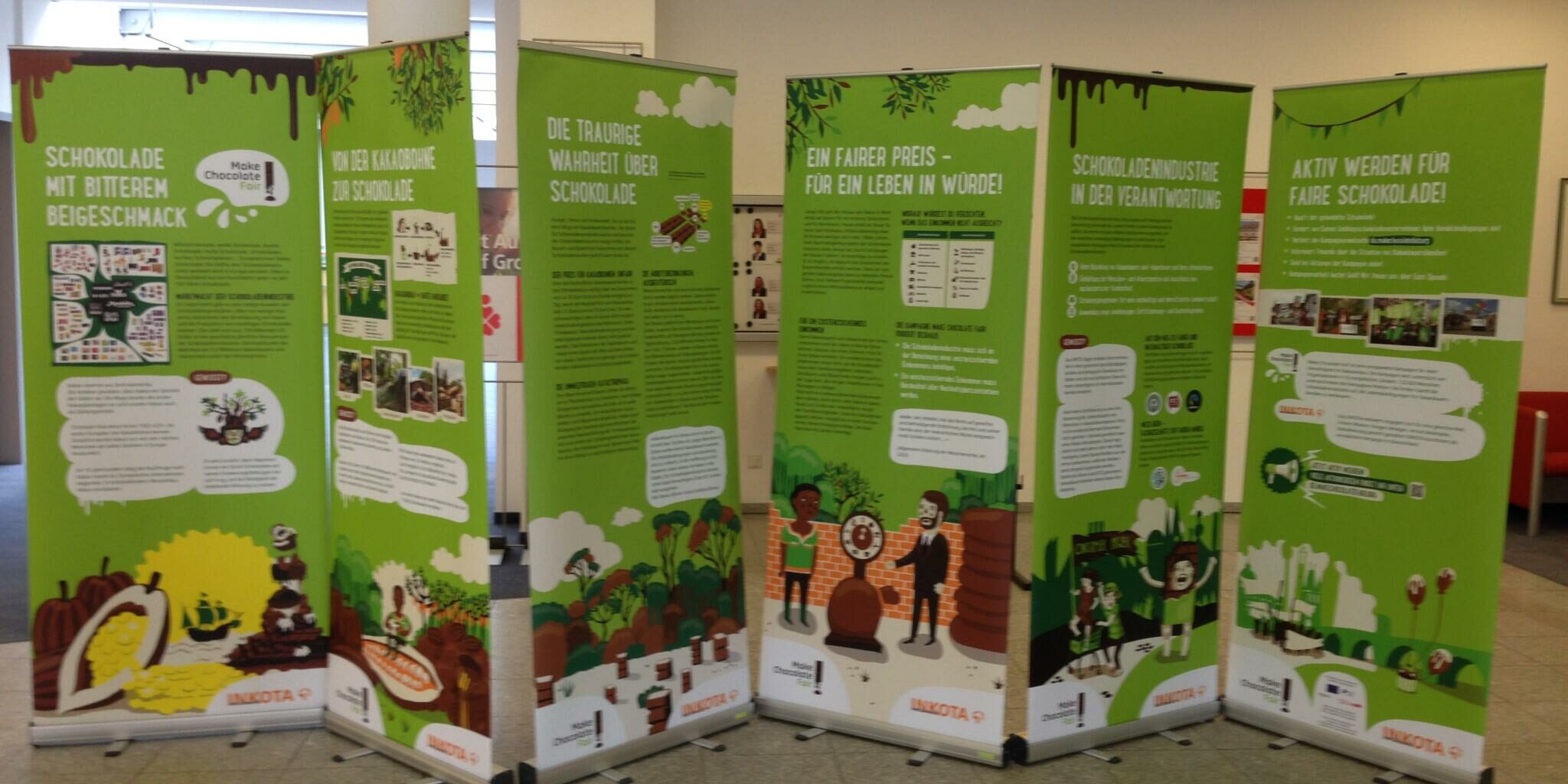 Die Entwicklungsorganisation INKOTA mit SItz in Berlin unterstützt Menschen im globalen Süden dabei, sich von Hunger und Armut zu befreien. Der Eine Welt Verein nutzt bereits seit Jahren das umfangreiche Angebot des INKOTA-Netzwerks für die Bildungs -und Öffentlichkeitsarbeit. Beispielsweise wurde in Zusammenarbeit mit der Steuerungsgruppe Faire Stadt Herrieden die Wanderausstellung „Make chocolate fair“ ausgeliehen und präsentiert. Als Zeichen der Solidarität will der Eine Welt Verein die wichtige Bildungs- und Informationsarbeit von INKOTA ab sofort mit einer Mitgliedschaft stärken. Nähere Informationen finden Sie unter www.inkota.de.