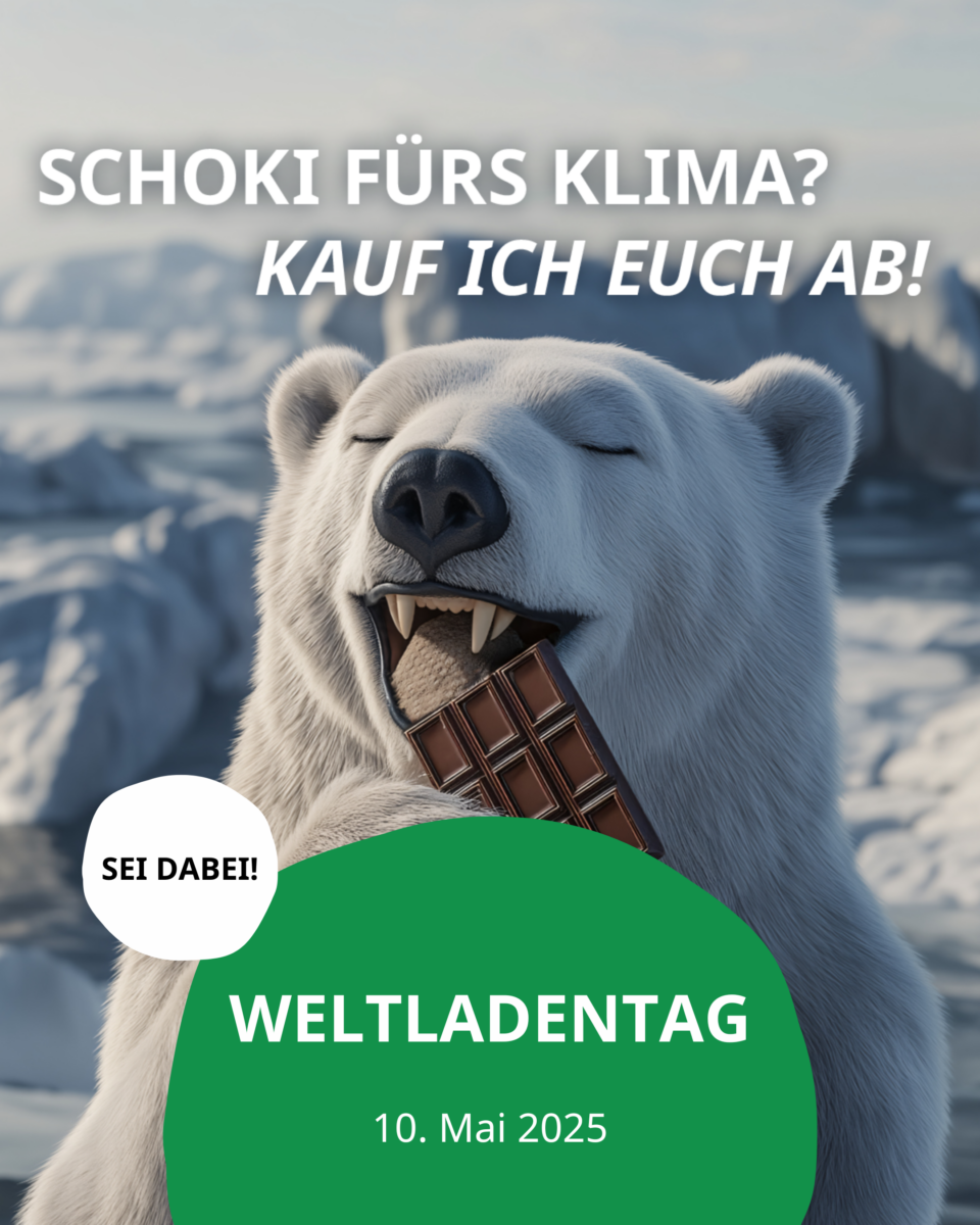 Rund um den diesjährigen Weltladentag am 10. Mai ist bei uns Einiges los. Es geht um die negativen Auswirkungen des Klimawandels auf den Kakao-Anbau, die Probleme der Kakaobäuer*innen und die Notwendigkeit, Ihnen durch Zahlung Fairer Kakao-Preise die Existenz zu sichern und Investitionen in einen nachhaltigen Kakao-Anbau zu ermöglichen. Dazu gibt es viele Infos, eine Unterschriftensammlung…