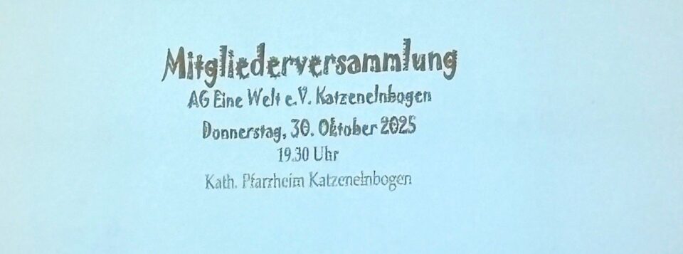 Am 30.10. fand die Jahresmitgliedsversammlung unserer AG Eine Welt e.V. im Pfarrheim Katzenelnbogen statt. Mit über 20 Teilnehmenden war der Verein beschlussfähig vor Ort und konnte so verschiedene Themen zu einer Entscheidung bringen. Zunächst wurde jedoch ein kurzer Rückblick auf die vergangenen 12 Monate geworfen und ein Überblick der Veranstaltungen geliefert sowie die Ertrags- und…