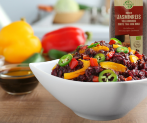 Geschmacklich ungewöhnlich und dazu noch sehr ästhetisch anmutend kommt der rote Jasmin Bio-Vollkornreis Sorte Thai Hom-Mali von El Puente daher. Mit einer nussig-süßen Note überzeugt er nicht nur die Geschmacksknospen, seine ungewöhnliche, intensive Farbe regt auch zu kulinarischer Experimentierfreude an.