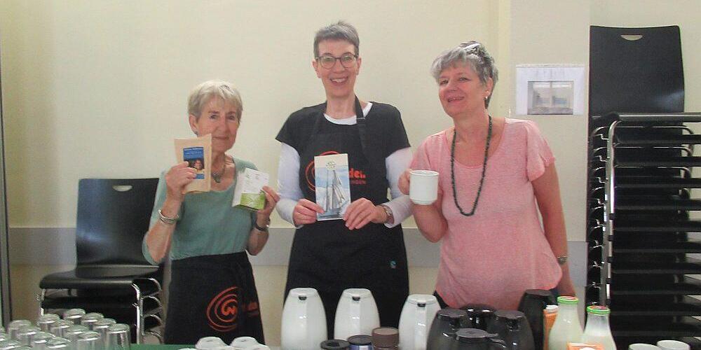 Die Teilnahme des Weltladens am Kitzinger „Klimafrühstück“ ist wichtig, weil sich kaum jemand ein Frühstück ohne Produkte aus den Ländern des Südens vorstellen kann – wie Kaffee, Kakao, Orangensaft oder Schwarztee. Der Klimawandel zwingt allerdings die Produzenten immer drängender zu Anpassungsmaßnahmen, denn Wetterextreme führen zu schlechteren Ernten. Die Fair-Handels-Bewegung richtet in Kampagnen Forderungen an die Politik, mehr Anstrengungen zum Klimaschutz zu unternehmen. Ebenso wird dabei gefordert, die Kleinproduzenten bei der Anpassung an die Folgen des Klimawandels finanziell oder durch Wissensvermittlung zu unterstützen. Und nicht zu vergessen: jeder einzelne ist aufgerufen, seinen Lebensstil klimaschonender auszurichten. Aber auch die Fair-Handels-Organisationen selbst schulen und beraten die Erzeuger beim Bio-Anbau, beim Arbeiten mit Kompost, bei der Anlage von Bewässerungssystemen oder bei der Umstellung auf Klima angepasste Pflanzensorten. Ein Beispiel für das Engagement der Fair-Handels-Organisationen ist der Warentransport mit dem Segelschiff. Der „Kaffee Ahoi“ von El Puente war beim Klimafrühstück ein Hingucker und er ist auch im Weltladen zu finden.
