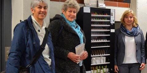 Die Staatliche Berufliche Oberschule Kitzingen (FOSBOS) nahm im Dezember offiziell den FAIR-o-mat in Betrieb. Dieser Verkaufsautomat in der Aula des Gebäudes im Schulzentrum am Mühlberg bietet fair gehandelte Snacks und Getränke für den schnellen Hunger zwischendurch. Die Idee entstand, als wegen des Umbaus in den vergangenen Jahren das Schülercafé vorübergehend schließen musste. Im mittlerweile renovierten Gebäude wird der FAIR-o-mat sich mit einer neuen Form des Schülercafés verbinden können. Besonders die Schüler der Vorklasse brachten sich im Schulteam sehr engagiert ein und werden künftig sowohl Einkauf, Bestückung als auch Buchhaltung eigenständig übernehmen. Die Erstbestückung wurde vom Weltladen Kitzingen gesponsert und von dessen Mitarbeiterinnen Sieglinde Schraut, Christa Heinrich und Michaela Woy-Fabian bei der Feier übergeben.