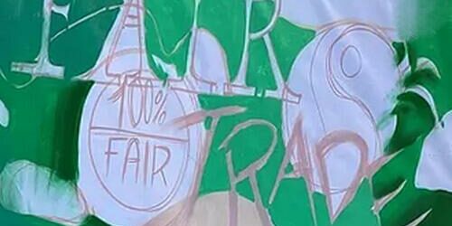 Die Leiterin der Steuerungsgruppe „Fairtrade“, Bianca Tröge, freut sich darüber, dass viele Menschen Interesse an der Arbeit ihrer Gruppe zeigen. Die Graffiti-Kunst von „Macs“ und die Musik der Band „Days of wine and roses“ haben viele Neugierige angezogen. „Macs“ hat passende Motive auf drei Bauzaunbanner gesprayt,