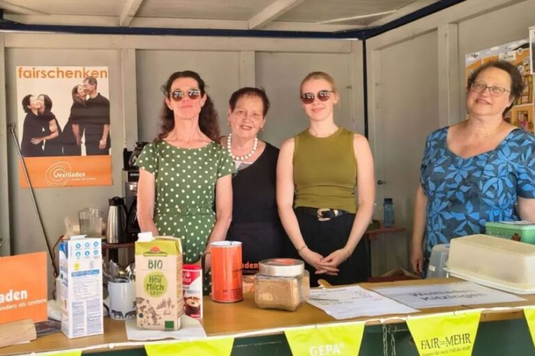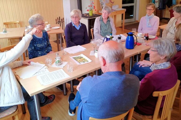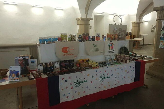 In der Bürgerstube im Bürgerzentrum setzten sich die Mitarbeiterinnen und Mitarbeiter des Weltladens zu einer lockeren Runde zusammen. Das Mitbring-Bufett war dank etlicher Spenderinnen gut ausgestattet mit würzigen Zwiebelkuchen, angemachtem Käse, frischem Brot und Brezen und vor allem süffigem Bremser. Nachdem der erste Appetit gestillt war, ergab sich eine Diskussion über verschiedene Themen, den Weltladen…