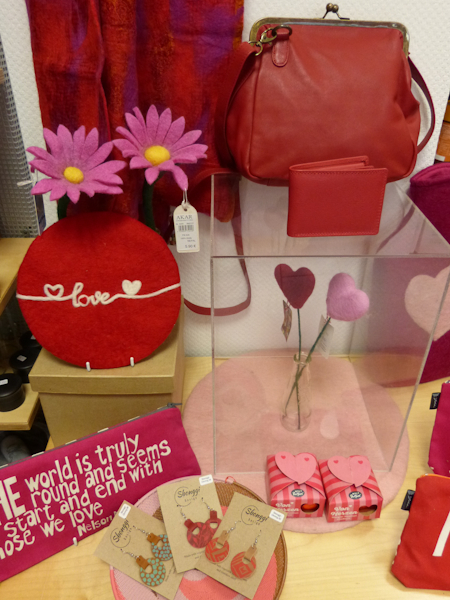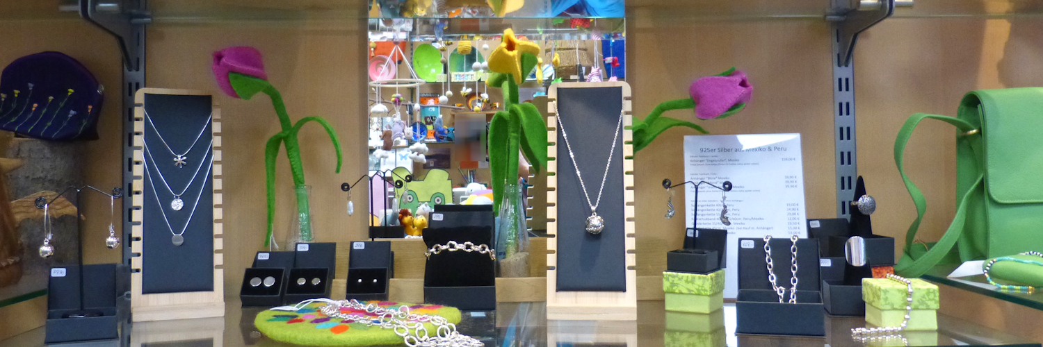 Farbenfrohe Schals aus Seide oder Alpakawolle und verschiedene Schmuckartikel geben Anregungen für schöne Geschenke.