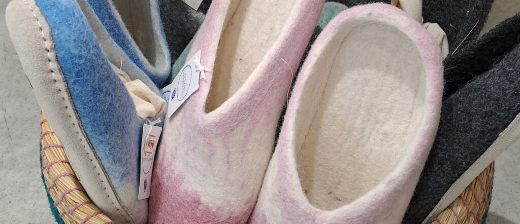 Wir haben neue Filzhausschuhe im Sortiment: 100 % Schafwolle/ 100 5 Wildleder von der artisan community.