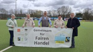 In diesen Tagen versammelten sich auf dem neuen Kunstrasenplatz des SV Vettelschoß junge Sportlerinnen und Sportler zusammen mit den Abteilungsleitern Fußball der Vereine SV Vettelschoß und DJK St. Katharinen. Anlass war der Besuch von Maria Zimmermann von der Fair Trade Steuerungsgruppe VG Linz und Hans-Joachim Schmitz vom Weltladen Linz. Sie hatten die Fußball-EM zum Anlass genommen, den Jugendmannschaften der beiden Vereine insgesamt vier fair gehandelte Lederfußbälle zu schenken. Das Geschenk wurde mit viel Beifall honoriert und aus verständlichen Gründen gerne und mit viel Freude angenommen.