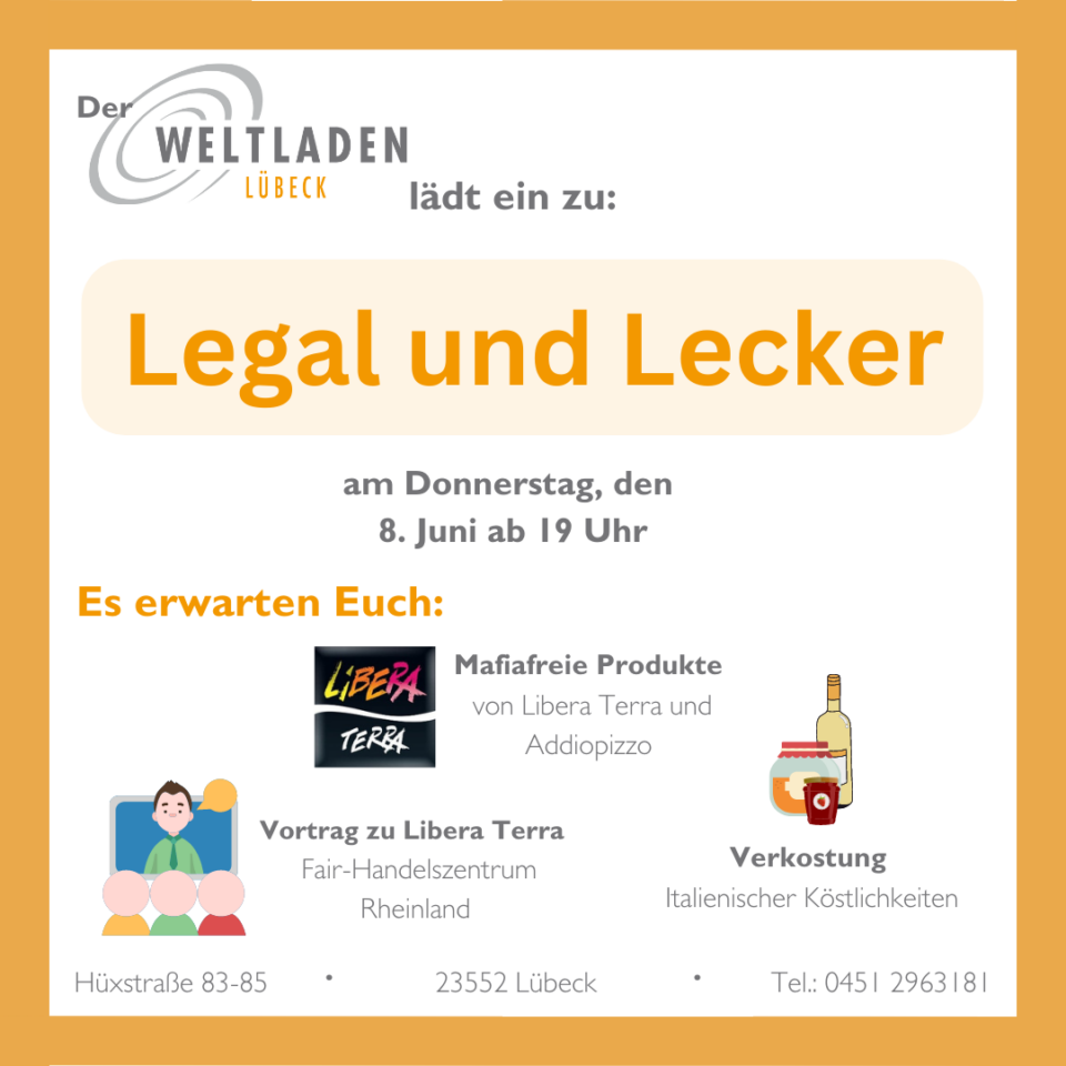 Hiermit laden wir euch ganz herzlich zu unserer Infoveranstaltung und Verkostung in unserem Laden ein. 🎉 Nächsten Donnerstag, den 08.06.23 erwartet uns Martin Klupsch vom Fair-Handelszentrum Rheinland mit Köstlichkeiten aus Italien von Libera Terra und Addiopizzo. Der Clou dahinter? Alle Produkte sind fair und unabhängig von der Mafia produziert.💪 Kommt vorbei, lernt warum mafiafreie Produkte…