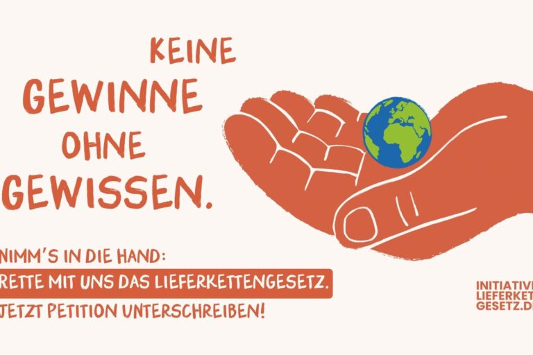 Neue Initiative Lieferkettengesetz   Seit 2023 ist das Lieferkettengesetz in Deutschland in Kraft, im April 2024 folgte die EU-Richtlinie. Das waren wichtige Schritte für mehr Verantwortung in globalen Lieferketten. Wichtige Schritte zur Bekämpfung von Kinderarbeit, zum Schutz von Arbeitern und Arbeiterinnen vor Ausbeutung und zur Bewahrung unserer Natur vor rücksichtsloser Zerstörung. Doch nun drohen Rückschritte:…