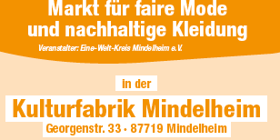 Gemeinsam mit der aktion hoffnung, ever&anon und dem Rot-Kreuz Laden veranstalten wir einen Markt für faire und nachhaltige Mode in der Kulturfabrik Mindelheim.