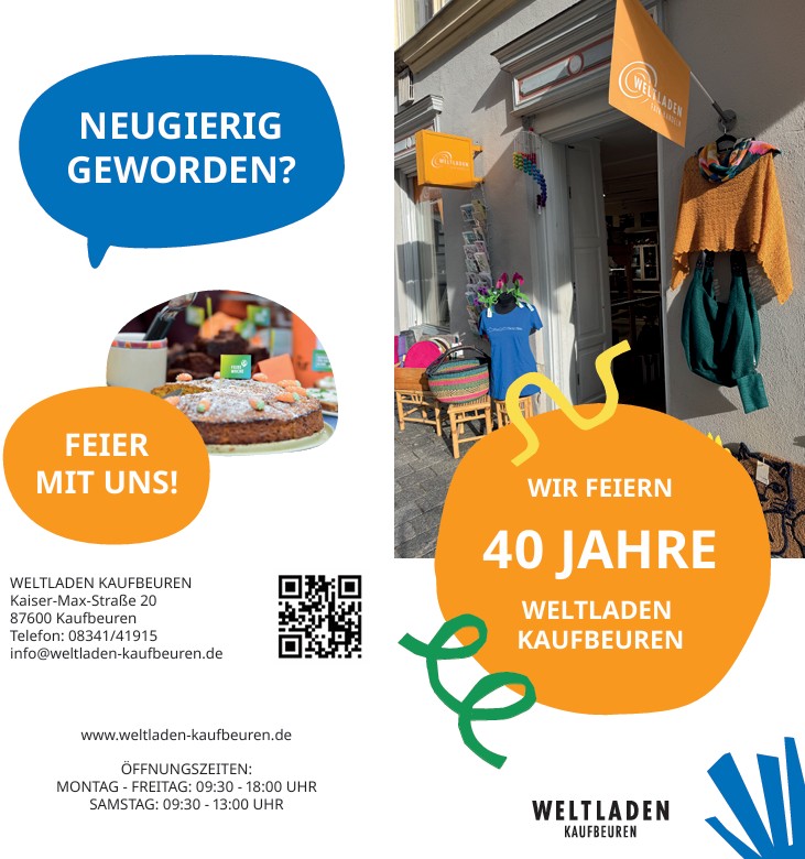 Am 17. April 2026 feiert unser Mitglied Weltladen Kaufbeuren 40-jähriges Jubiläum