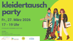 ACHTUNG: Kleiderannahme nur am Donnerstag, 26. März 2026 von 17 bis 19 Uhr in der Alten Weberei. Nur in Ausnahmefällen auch am Party-Tag selbst. Alle nicht getauschten Kleidungsstücke kommen einem guten Zweck zugute.