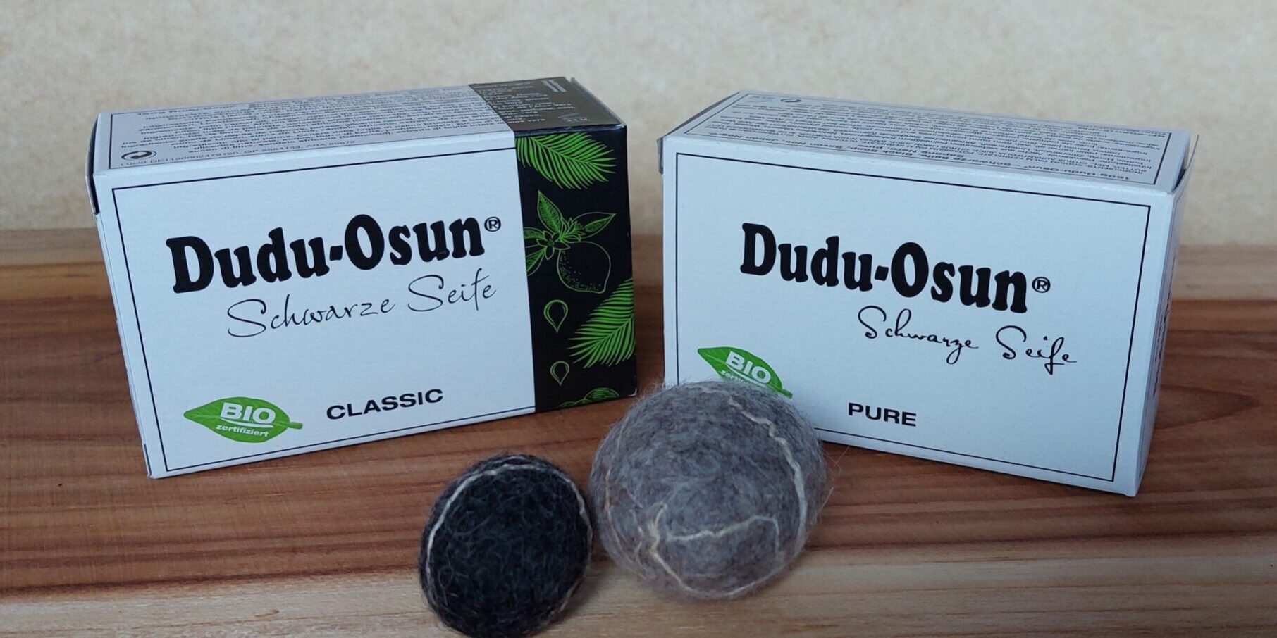 Erhältilich als Dudu-Osun® CLASSIC und Dudu-Osun® PURE. Nur in der Variante Dudu-Osun® CLASSIC ist Parfum enthalten, ansonsten sind beide Naturseifen identisch