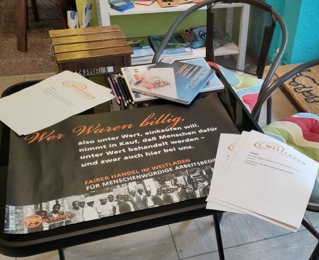 eine Oranienburger 8. Klasse zu einer Erkundungstour zum Fairen Handel durch unseren Weltladen begrüßen.