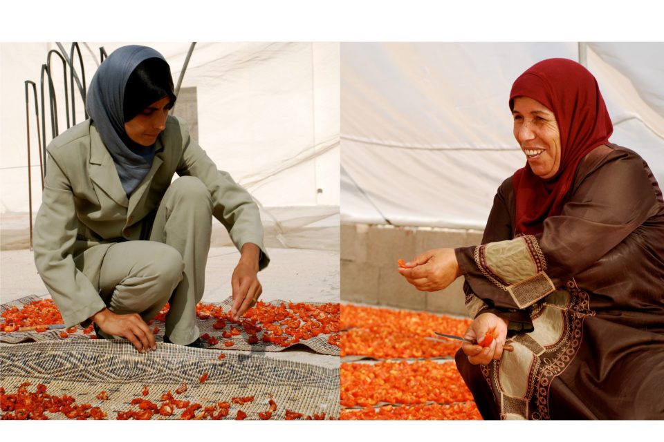 Die sorgfältig von Hand sortierten Tomaten kommen aus verschiedenen Frauenkooperativen im Westjordanland, die Canaan Fair Trade beliefern. Mit einem Mikrokreditprogramm werden die Frauen, die ein Gewerbe aufbauen möchten, von der Fair-Handels-Organisation unterstützt.