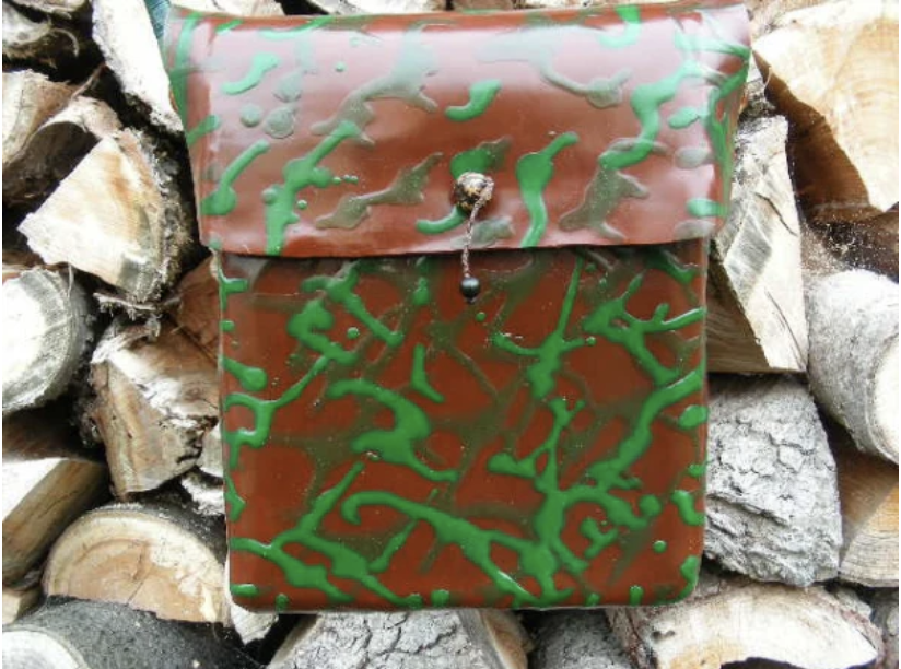 Jede Umhängetasche ist ein Unikat, sie sind robust und wasserdicht. Sie wurden in reiner Handarbeit von den Gummizapfern am Amazonas hergestellt. Das Besondere ist die Tatsache, dass diese Taschen ohne eine einzige Naht, ohne einen einzigen Nadelstich hergestellt werden. Sie entstehen durch bis zu 60 Tauchvorgänge in Rohlatexmilch. Dazu wird ein Holzbalken im jeweiligen Taschenformat immer wieder in Latexmilch getaucht und mehrmals mit Sägespänen bestreut. Nach jedem Tauchvorgang muss die nun angelegte Latexschicht trocknen. Erst dann kann der nächste Tauchgang erfolgen. So entstehen bis zu 60 Latexschichten mit dem eingearbeiteten Sägemehl, welches den Taschen mehr Stabilität verleiht.