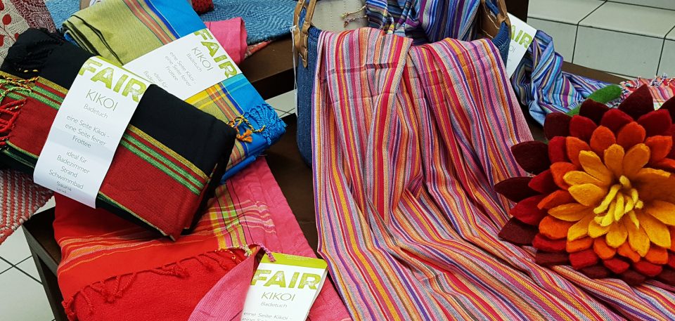 Ursprünglich ein traditioneller Wickelrock, sind die baumwollenen Kikois echte Multifunktionstücher : Je nach Größe als Handtuch, Schal, zum Haaretrocknen oder eben als Wickelrock geeignet.