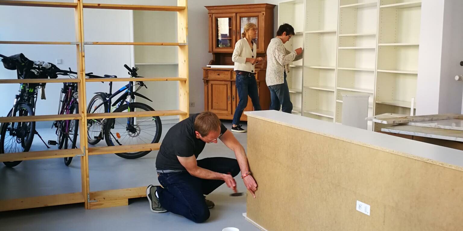 Schritt für Schritt geht es mit dem Weltladen in der Niederhofer Straße 9 (zwischen Gärtnerei Reitzenstein und Apotheke) voran! Während der Pfingstferien wurden die ersten Regale zusammengebaut und aufgestellt – der Verkaufsraum nimmt schon langsam Formen an! Einige weitere Möbel sind noch notwendig, dann geht es an die Bestellungen für die ersten Produkte. Parallel muss noch viel Papierkram für die Vereinsanmeldung, Registrierung, Kontoeröffnung etc. erledigt werden, aber der Vorstand ist fleißig am Werk!