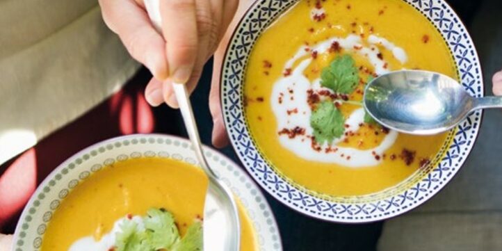 Koriander, Zwiebeln und Knoblauch in Kokosöl bei nicht zu hoher Temperatur glasig braten. Mit etwas Salz bestreuen.
