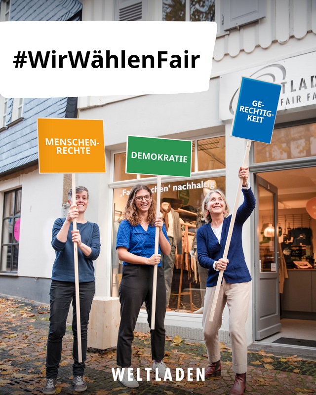 Bundestagswahl 2025: Nutzt eure Stimme für Gerechtigkeit. Der Weltladen-Dachverband positioniert sich gemeinsam mit dem Forum Fairer Handel und Fairtrade Deutschland für eine weltoffene und solidarische Gesellschaft, die Menschenrechte und unsere Demokratie schützt. Mit Blick auf die Bundestagswahl am 23. Februar 2025 lautet unsere Botschaft: #WirWählenFair. Die Fair-Handels-Bewegung setzt sich ein für eine Welt, in der…